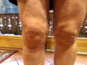 Somehow, and with the help of the loan of a hinged knee brace from another aged friend, I got back to my chalet. Ice was applied, some compression and I elevated my leg. Now was the time to dose up on ibuprofen and paracetamol.